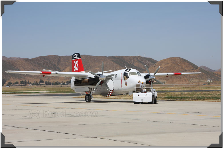 CDF Tanker 93 is being pulled to its place in the ramp line up. N450DF c/n 228C is a Grumman Tracker converted to turbine-power by Marsh Aviation, designated S-2F3AT 'Firecat' (don't know if that is an official name..) and this one was manufactured/converted in 2005 (registered to Marsh Aviation on 10Oct03). It was formerly flown by the US Navy with serial 152341. |