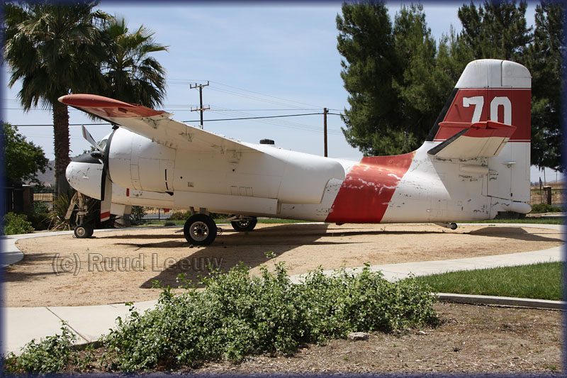 Grumman S-2A Tracker (G-89/S-2F-1), rather crudely painted as 'Tanker 70' 4146 / 70 (cn 654), on display in front of the CDF base. This is ex Japanese Navy 4146 (ex US Navy 136745) painted up as a CDF aircraft. This aircraft was however never converted to a firefighter, nor did it receive a US civil registration.... [Source Airliners.net]. Hemet-Ryan airfield on Airliners.net |