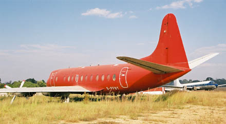 C/n 265 - Viscount V.806 First flight 03May58 - registered to Vickers-Armstrong (Aircraft) Ltd on 20Dec56 as G-AOYP. UK CoA issued on 15May58, whilst delivered to BEA on 16Mar58. Withdrawn from use and stored at Cambridge (Teversham) 10Apr69 - 07Jan71. Sold to Cambrian Airways (part of BAS) on 07Jan71, reg'd 20Jan71. Reregistered to British Airways Regional Division 01Apr76. Port wheel collapsed on landing at Cardiff 25Sep79, arriving from Amsterdam flight BA914. Last service for BA was on 26Mar81, withdrawn form use with ttl 34.817 hrs and 37.410 cycles. Delivered to BAF 10Apr81, named 'Rita'. Leased to Air Algerie 12May81-11Mar82. Leased to Nile Valley Air Services between Oct82-Feb83 but the lease did not materialize. Transferred to BAF Air Tours 02Mar83. Transferred to subsidiary Jersey Air Ferries between 15Apr83-Oct83. Returned to BAF, leased to Gibraltar Airways 28Nov83-12Dec83 and Virgin Atlantic Airways Dec85-Dec87 & Aug88-May89. Next was Air UK (14Mar89) and BA (19Jan90). And Air Europe Express (28Oct90) and to Manx Airlines (29Oct90). Began a major overhaul during Jan91 into 'Freightmaster' configuration. BAF became British World Airlines on 06Apr93 and the aircraft was reregistered on 22Mar94 as G-PFBT. It was rolled out at Southend on 25Mar94 in full red Parcelforce colours. Delivered to Heli-Lift Ltd on 23May97 and leased to Heli Jet Aviation that same date. UK registration was cancelled 08Sep99, but reportedly seen at Lanseria, South Africa still as G-PFBT on 17Nov99. Was allocated the registration 3D-PBH, but doubtful if this registration was ever carried. Parts were used for repairs on other Viscounts. Heli Jet Aviation's two other Viscounts were subsequently sold to a South African leasing and charter specialist, Plane 'R Us Pty., but it is unclear whether G-PFBT was included in the deal. Breaking up started at Lanseria on 20Apr06, with the nose section reported at Lanseria's dump by Sep06. In the spring of 2007 the nose section was bought by a film company and removed from the airport. "The Vickers Viscount" (- by Rayner G C Kittle; Air-Britain Historians Ltd, 2008) |