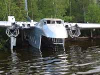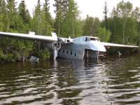 It flipped over while scooping water Sitidgi Lake, NWT 24Jul2001. It was recovered from the seabed and brought ashore for repairs.