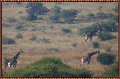 At first we took a wrong turn and drove a service road along the fence but after 30mins we found the small road that winds through the Game Reserve and we could look for wildlife in earnest. The giraffe was the first "Big Game" we spotted and we admired its stature and grace.We drove for over two hours and saw wildebeest, antilopes, birds and warthogs. The Rhinoceros proved to be elusive. We also enjoyed the quietness of the surrounding area and found that the second part of this holiday had truly begun. |
