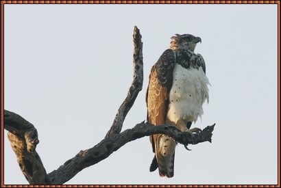 We came across a large selection of birds too. Some of the eagles we saw were pointed out by our Ranger as: American Fish Eagles, Tawny Eagles, Snake Eagles, Kites and Buzzards. Could this be a Martial Eagle, it has the white breast and fine brown spots that identify these eagles.More Birds... |