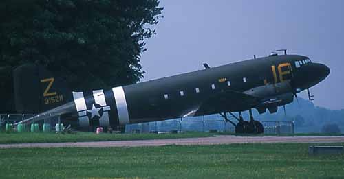 The Classic Air Show at Coventry made me cross the Channel again, but since my last visit a few years ago a few interesting developments had taken place in the UK and I decided to invest a few extra days to visit these. My first stop was at North Weald, where last year 2 Douglas DC-4s had settled down. These venerable Douglas transports had undertaken the crossing from the US, to take part in a movie about the Berlin Airlift. North Weald (near London-Stansted) is the homebase of Aces High, who buy or lease planes for use in movies and this little airfield positively oozes out history, every step you take here...