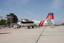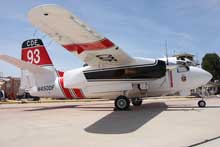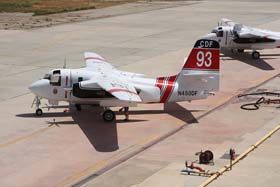 CDF Tanker 93 is being pulled to its place in the ramp line up. N450DF c/n 228C is a Grumman Tracker converted to turbine-power by Marsh Aviation, designated S-2F3AT 'Firecat' (don't know if that is an official name..) and this one was manufactured/converted in 2005 (registered to Marsh Aviation on 10Oct03). It was formerly flown by the US Navy with serial 152341. |