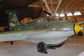 As the only operational rocket-powered fighter of Second World War (first flight: August 1943), the Komet was designed to exceed the performance of conventional aircraft. Originally tested as a glider, the tailless design incorporated a wheeled dolly dropped during takeoff, and a landing skid under the fuselage. The Komet first flew operationally in May 1944. |