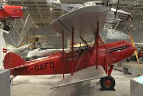 C-GAFD was built in 1928 and was purchased in the US by Leavens Aviation Incorporated during the 1970s and restored to commemorate the firm’s 50th anniversary. It became a familiar sight at aerial displays and fly-ins throughout Ontario for a number of years. At first loaned and then donated by the Leavens family of Toronto, it was flown to the Museum during the summer of 2000. |