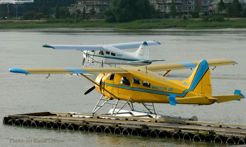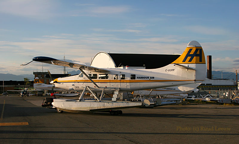 I took this photo mainly for the hangar in the background...But there are 2 Beavers parked here. One is c/n 963 C-FJFQ. It was delivered on 25Jul56. Operators include Granduc Mines Ltd (CF-JFQ) and Air B.C. Gulf Air Aviation bought it in 1979. It crashed on 13Apr81 at Knight Inlet,BC during take off from a river, when it struck shore... But she wasn't written off and C-FJFQ she reappeared with Pacific Coastal Airlines Ltd. of Richmond,BC (06Sep89). Next operator became Coast Western Airlines Ltd. of Garden Bay,BC (18May94). Present owner / operator Harbour Air Ltd. of Richmond,BC had C-FJFQ registered on 30May95. Source and more photos: http://www.dhc-2.com/id105.htm C/n 1010 is C-FMXS these days. History started on 07Dec56 when it was delivered as 55-4609 to the US Army. Its career came to an end in 1975 and it was stored at Davis Monthan AFB from 03Feb75 to 19Nov76. Its first tailnumber was N43882 for the Department of Agriculture of Mission,TX but I have no date for this; it was cancelled during Feb92. N300KU became it snext identification, for the Kansas Geological Survey (University of Kansas) of Lawrence,KS except... it wasn't taken up! It underwent a Shawano conversion. It was entered in Canadian's Registry as C-FMXS on 25Feb92, probably for John Racey of White Rock,BC. But http://www.dhc-2.com/id104.htm also states that same date as being registered to Baxter Airlines Ltd. of Nanaimo,BC. Regd 14/05/92 Harbour Air Ltd. became owner on 14May92 Richmond,BC. And Vancouver Airport South, is its homebase. |