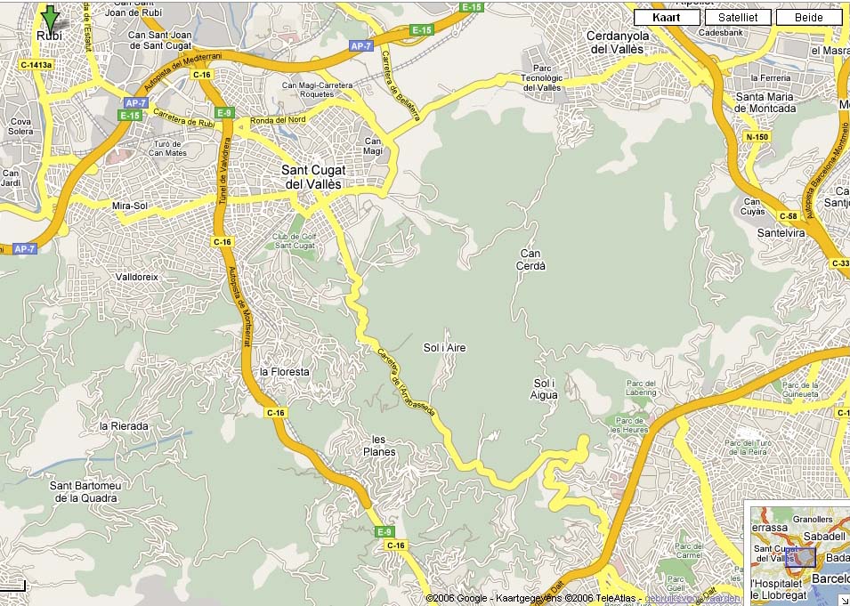 Finding them was not so easy as I was led to believe ! I started my search based on the information that the "Strats" were located (and visible) next to Motorway A7, which runs east-west north of Saint Cugat. I drove this stretch twice but without any result. Other information told me they were located (and visible) from the road out of Barcelona, going north, to St Cugat. So I drove this road twice, too !