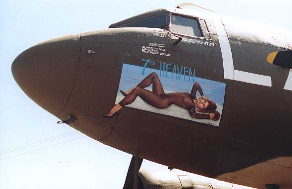 A work of art on this C-47A 43-15977, "7th Heaven", on display at Castle AFB Museum,CA. I visited this museum in 1996 and it looked beautifully restored. I value the fact that it carries its original USAAF serial (delivered in 1944) as with some restorations they put a registration on it, that has nothing to do with its history; in this case it was full marks on all counts.