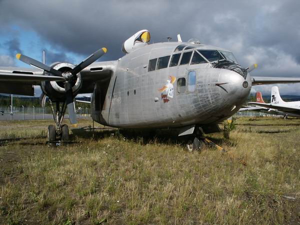 C-119G N8504Z (cn11253) of Everts Air Fuel, Fairbanks,AK. Reported in flying condition in 1994, it seems it really did not do much flying. Further reports always refered to it as "stored". As it was in 1995, it has "Know Fear"-titles on the forward fuselage. Information on its (active) past would be welcome.