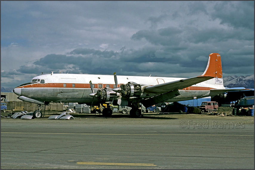 Fred Barnes wrote me in Aug.2018: "Regarding the Dirk Septer photo and his report on DC-6A N12347. I took a photo in better times, on 04May1986 at Anchorage,AK. The old DC-6A was being worked on and was still in faded 'Sis Q'-livery. Believe it was intended for Northern Pacific Air Transport." |