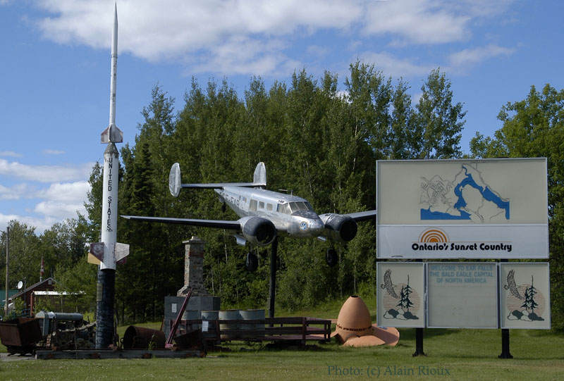Alain Rioux found this off-airport Beech 18 at the Ear Falls District Museum (Ontario,Canada) and displayed it on Airliners.net; click the image for a link to a larger image on Airliners.net. Here is what he wrote: