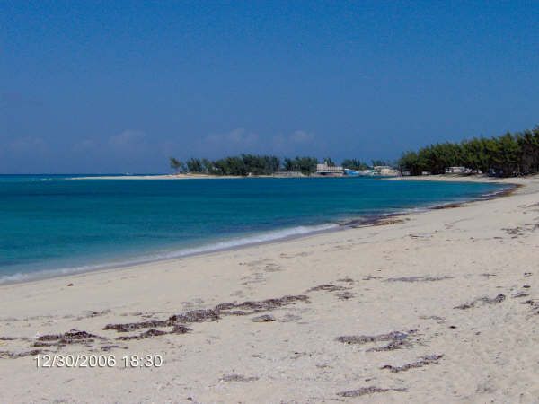 Picture no.1 (left) was taken looking towards the channel between north and south islands, with the Bimini Sands resort just a couple of feet behind. The wreck is in the vicinity of the second set of shadows in the water up the beach from me."