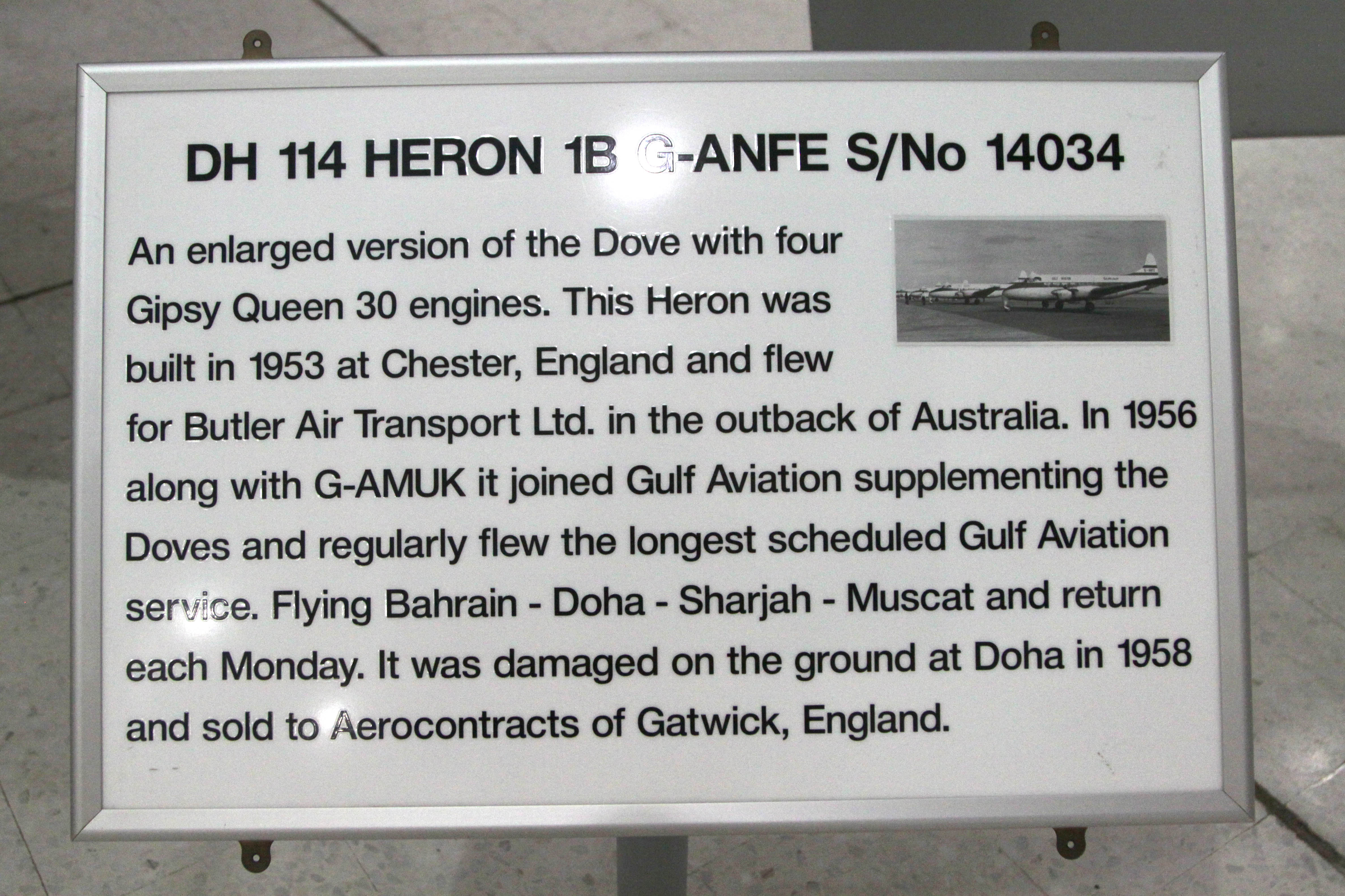 At first it was marked 'G-DJKP' for the Al Mahatta museum, then changed into 'G-AMZZ'. But no dates to this. By January 2003 at the Sharjah Aviation Museum.