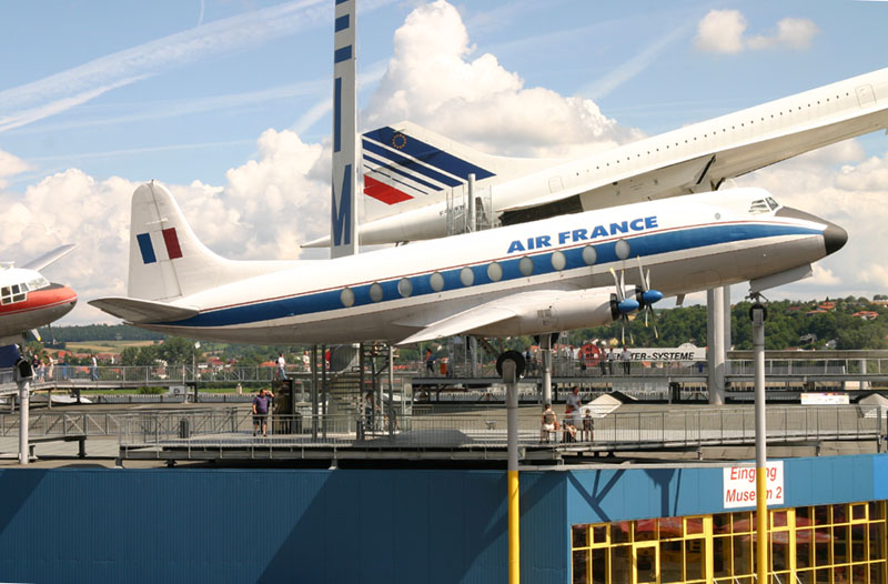 | C/n 38 - Viscount V.708 First flight 05Jul54 - ordered by Air France in Nov51 and delivered to them on 28Jul54 as F-BGNU. CofA was issued 06Aug54. Subsequently re-configured from 48-seat to a 63-seat passenger configuration. Leased to Vietnam between 06Jan61 nad Jan63. Transferred to Air Inter on 22Jan63, the Certificate of Registration issued on 19Jul63. Withdrawn from use and ferried from Paris (Orly) to Mulhouse-Habsheim on 26Mar75. To be used as a clubhouse by the loacl aero club and in Air Inter livery, minus titles. On 28Mar86 dismantled and moved to the Auto & Technik Museum at Sinsheim, still in its original Air Inter scheme but carrying large "Museum Airlines" titles on the fuselage. Still current at the museum in basic old Air Inter colours but now with Air France titles and a French flag on the tail, but no registration. Source: "The Vickers Viscount" - by Rayner G C Kittle (Air-Britain Historians Ltd, 2008) |