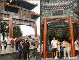 ![]() Our guide Wu Li Ping (Li Ping = Beautiful Rainbow) explained the palace in great detail, but it is spread out over such a large area that we could not take it in. The Summer Palace is mainly dominated by Longevity Hill (60 meters high) and the Kunming Lake. It covers an expanse of 2.9 square kilometers, three quarters of which is water. |