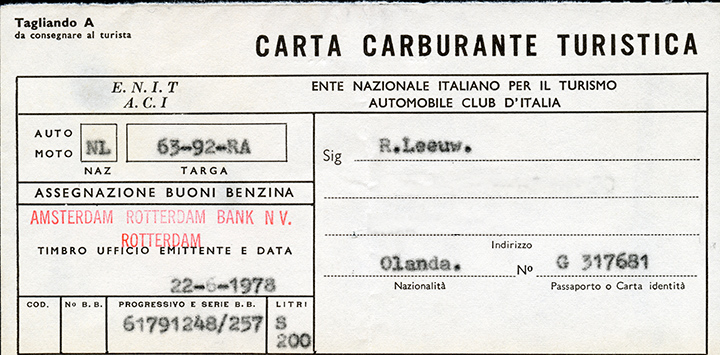 ![]() At the time one could purchase vouchers to pay gas with in Italy, it was cheaper that way. While writing this in july 2009, I still find Italy has a considerable 'third world country' flavour to it. |