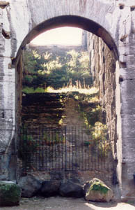 | One can see how the Colloseum floor has been opened up to show the facilities below the grounds, where many centuries ago gladiators fought for their lives in entertainment to the crowds. |