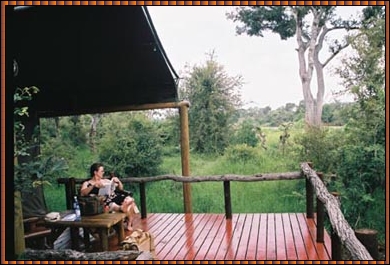 ![]() This lodge offered 4 tented cabins and 5 chalets and we preferrred the tents. During darkness it is not allowed to raom around the camp as hyena's, leopards and hippo's walk around too... A Ranger provides escort to and from the tent during darkness. The rest of the staff was equally helpful to make our stay very pleasant and the food was excellent. It really could not have been better. |