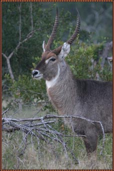 The Common Waterbuck is a large antelope and not at all that common in these parts. The coat of long hair is grey-brown and only males possess horns. They are preyed upon by all larger carnivores, particularly by lions.