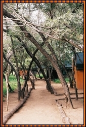 Having made reservations from Johannesburg in the Gomo Gomo ("Little Hills") Lodge, I intended to stay in Hoedspruit for 1 night. To make sure I was able to reach my destination in time the next day. Again from experiences in the USA I had assumed ("to assume is to make an ass out of you and me") that hotel accommodation in this gateway to the Timbavati Game Reserve would be plenty available but I was proven wrong... There are lodges in the area, but their prices vary little from the one I had booked. Fortunately the Lodge could accommodate us 1 day earlier (I phoned ahead, it is a long drive into the park) and we were just in time to make it for the 16:00 gamedrive.We were accommodated in Tentcabin no.4, at the far end, near the hippopool and blessed with a nice view. More about this later. |