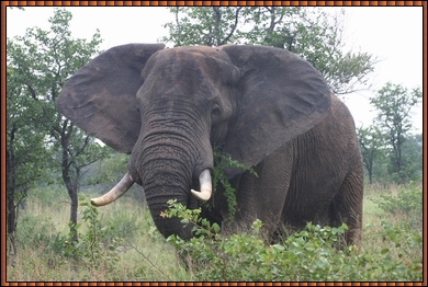 No safari would be complete without sightings of the impressive African Elephant ! Males usually keep to themselves, alone or in small bachelor groups. This one was feeding on grass, bark and leaves without loosing sight of us, without any alarm by the way. Again our Ranger had approached the animal with care, but the elephant considered us with the same indifference as all the other animals.No other animals seem to prey on elephants but their age is determined by their teeth... They change their molars 6 times during their lifetime and after that they will weaken and become prey... or fall over ? |