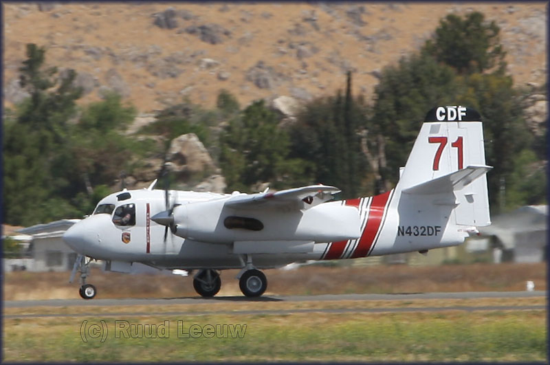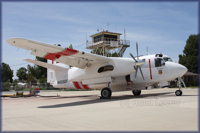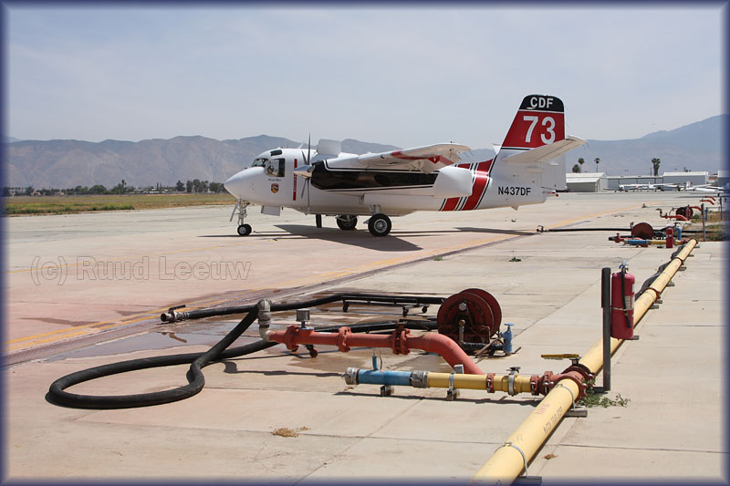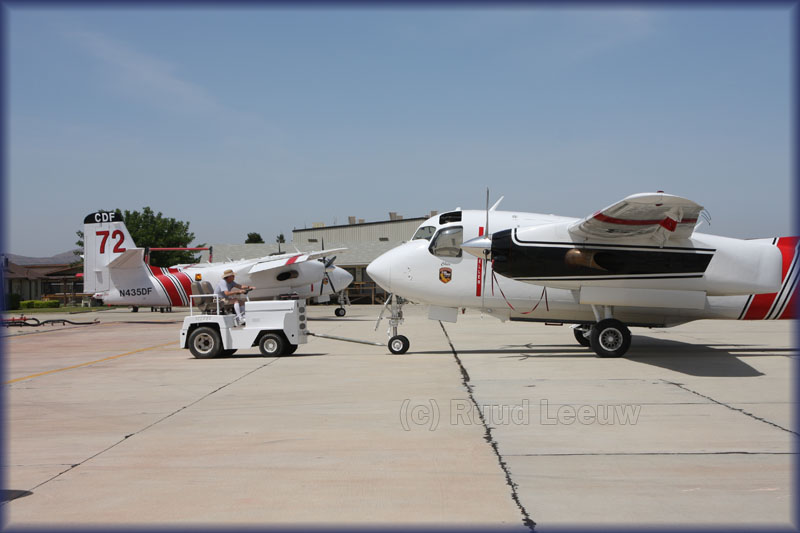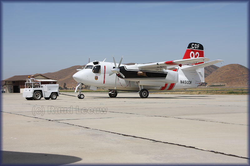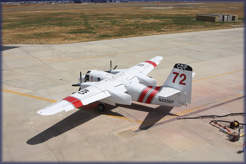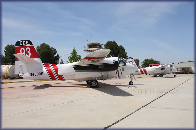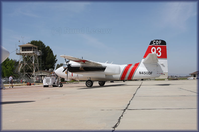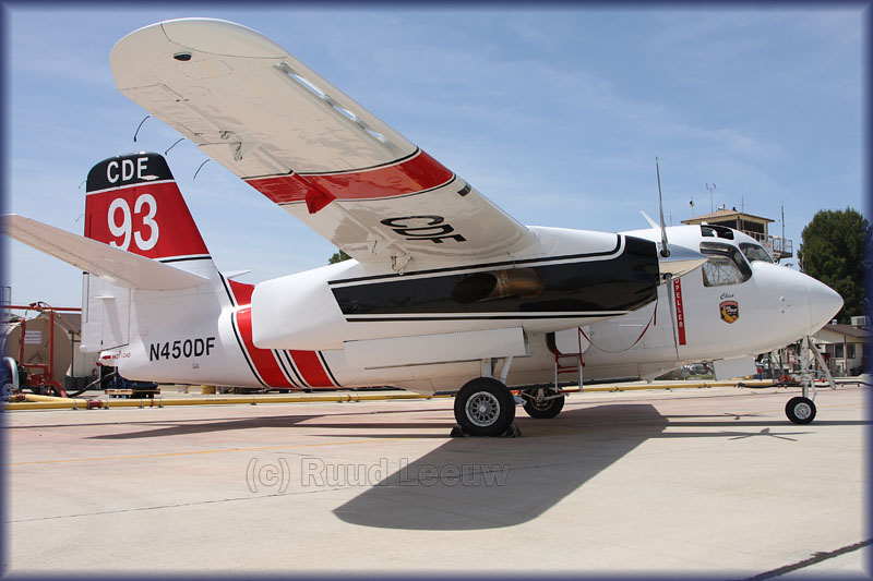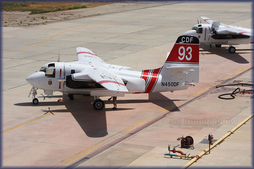 CDF Tanker 93 is being pulled to its place in the ramp line up. N450DF c/n 228C is a Grumman Tracker converted to turbine-power by Marsh Aviation, designated S-2F3AT 'Firecat' (don't know if that is an official name..) and this one was manufactured/converted in 2005 (registered to Marsh Aviation on 10Oct03). It was formerly flown by the US Navy with serial 152341. |