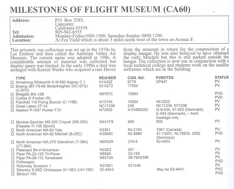 In July 1974 it ended up here in Lancaster,CA with Antelope Valley Aero Museum.