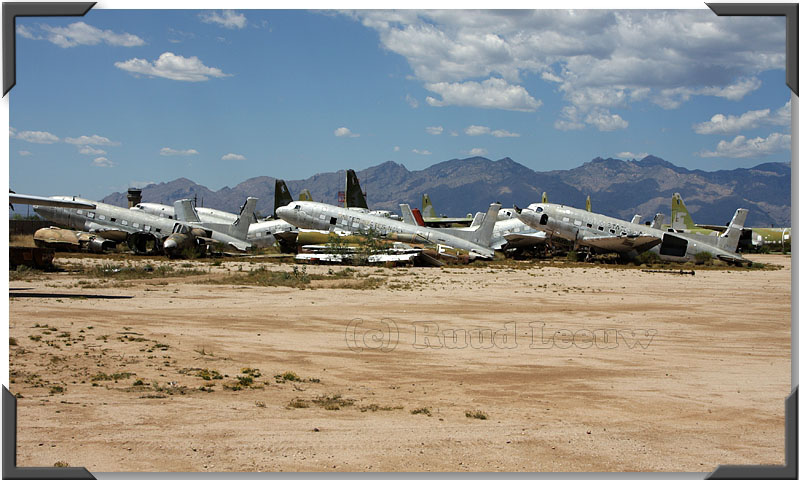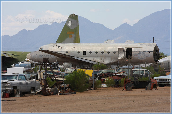 I took this shot over the fence of the (closed) yard on 5080 E. Nebraska Street, the Aircraft Restoration & Marketing-ARM (formerly DMI?). Btw, that AMARC (or AMARG) code (e.g. 6C020) was explained to me as: 'IG = Inspector General. 90-201 = AFI 90-201: The Air Force Inspection System document.' Whilst browsing in april 2013 I stumbled on a website: http://www.armair.com/map.html C-117s noted in Oct.2012 here at ARMair were: 12412, 17150, 17194 and 50812. |