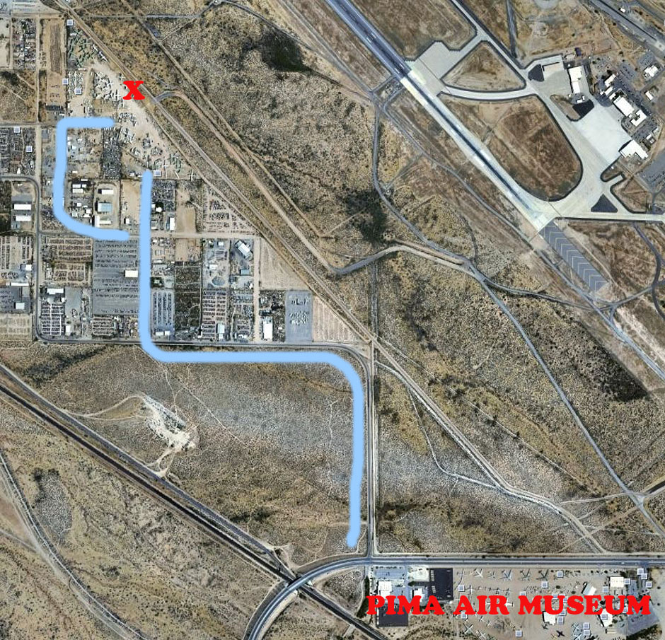 ![]() This was shot from the SAMCO's gate onto the some sort ofperimeter road to the AMARC: prohibited to cross! Here is another Google Maps screendump to clarify the location. |