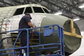 The biggest changes made, I found, were in the organisation. A team of engineers have joined this project in Auburn,ME because the information flow for engineering advise between Auburn and Germany took so much time it was found to be far more efficient to bring in a team here. Engineering advise for repairs (and cost comparison to have components manufactured new) are all important for the progress in this ambitious project. The Auburn Project has moved up in terms of management as: a senior manager has joined in May, expediting decision making and budget handling. 'Bizjet Auburn' has been formed as part of the Lufthansa Technik Group; as a company, with all rules and regulations taken care of; the professionalism and commitment here at Auburn are obvious. |