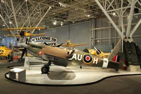 Built in 1944, the Museum’s L.F. Mk. IX flew with the RAF, as well as with one RCAF and one Polish squadron. After the war it was sold to the Netherlands Army Air Force and sent to the East Indies. After further service with the Belgian Air Force and private owners, it was purchased and brought to Canada in 1961. Flown privately from 1962 to 1964, the aircraft was donated by the owner to the Museum. |
