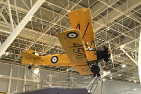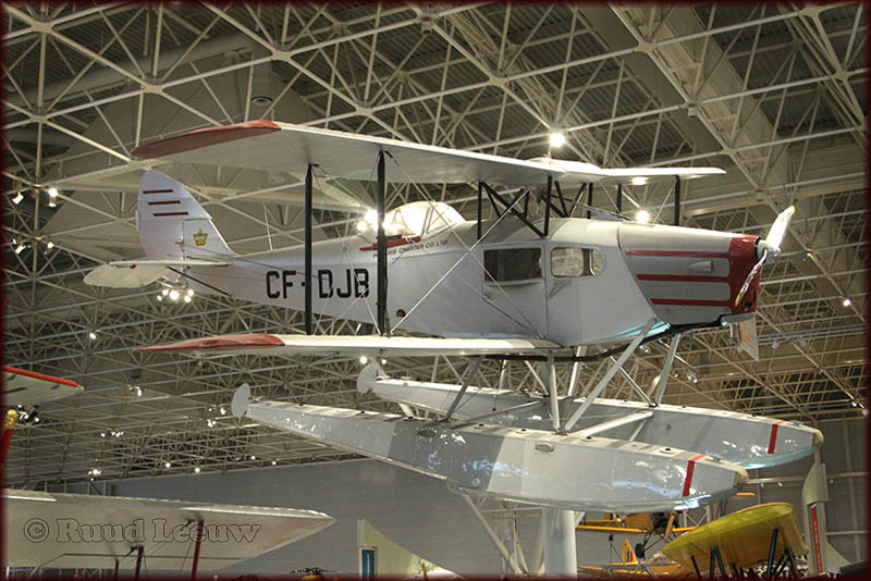 de Havilland D.H.83C Fox Moth, CF-DJB (c/n FM-28/2) ![]() The Fox Moth was designed in England in 1932 as a light, economic transport, and was built using as many Tiger Moth components as possible. Fox Moths were produced in Canada after the Second World War mainly to keep the plant in production, but also to satisfy the increasing need for new bush aircraft. All the Canadian modifications made to the Tiger Moth were also applied to the Fox Moth. Of the 53 produced, 39 remained in Canada, most of which were operated in float/ski configuration, and gave years of satisfactory service. The Fox Moth, though efficient, was a bit of an anachronism. For example, a modern, moulded- plexiglas sliding cockpit-hood was attached to what was essentially a 1932 aircraft. Communication between the passenger cabin in the fuselage and the cockpit to the rear was through a hole in the instrument panel. De Havilland designed a special stretcher for the Fox Moth, in order that it could operate as an air ambulance. The Museum aircraft was built in 1947. It was owned by a number of operators, then purchased, restored, and flown for Maxwell W. Ward (Wardair) in the 1980s. This Fox Moth was presented to the Museum in 1989. |