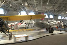 We had a full day in Ottawa. The autumn weather had turned on us and it kept raining all day. On this page we'll explore the Canada Aviation Museum. The visit was not without disappointment. When I had explored the main museum, I asked at the desk how I would get to the 2nd hall. And I was told that it was mainly a storage area and could only be visited during a guided visit; for the start of that tour I had to wait an hour. I wasn't prepared to wait that long, so I left that for another day. Pity that information wasn't made available to me when I bought the ticket, as that morning they had 2 groups doing tours. For the information in the captions I am largely indebted to the museum's excellent and informative website. |